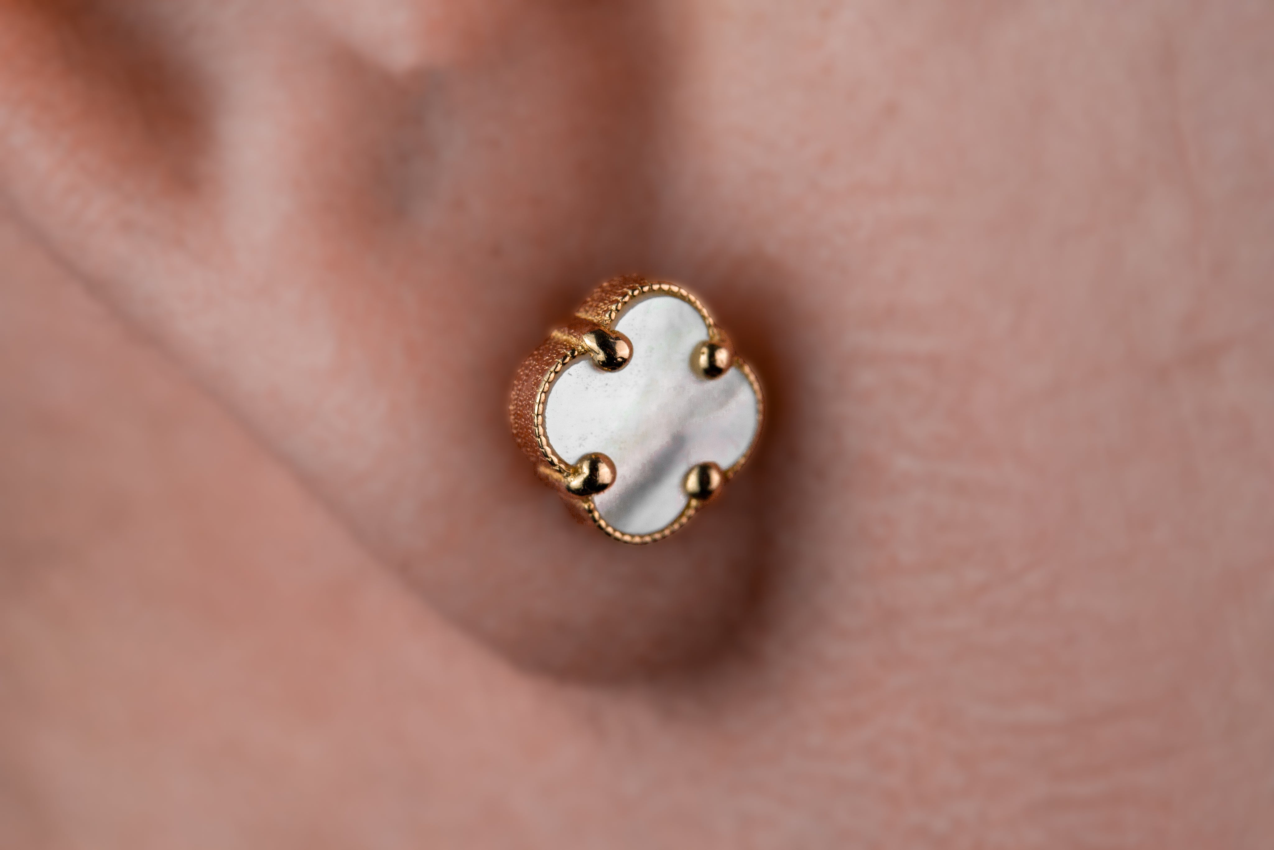 Aretes de oro amarillo 10k Concha nacar color blanco Con cierre tipo mariposa.