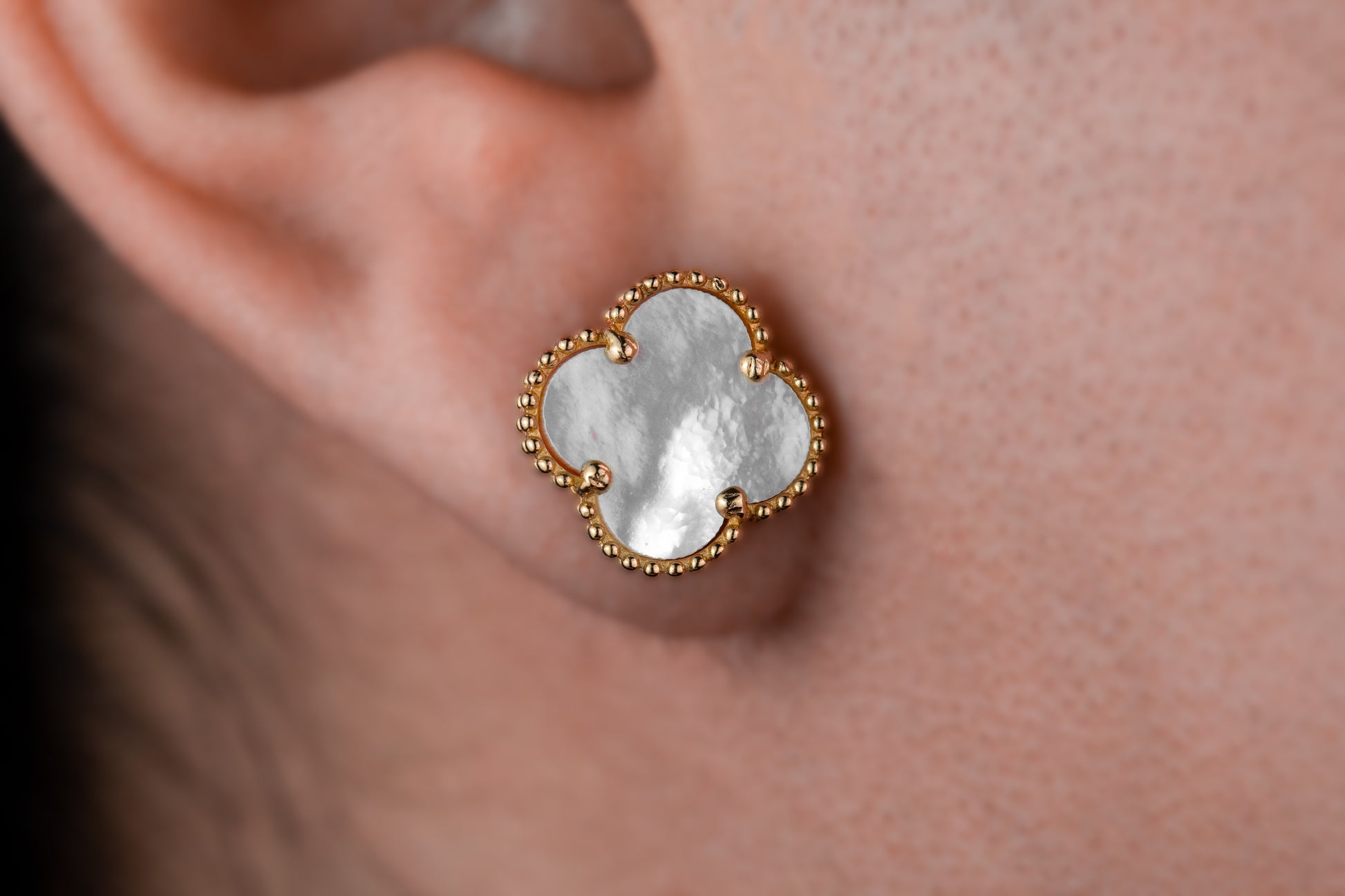 Aretes de oro amarillo 10k Concha nacar color blanco Con cierre tipo mariposa.