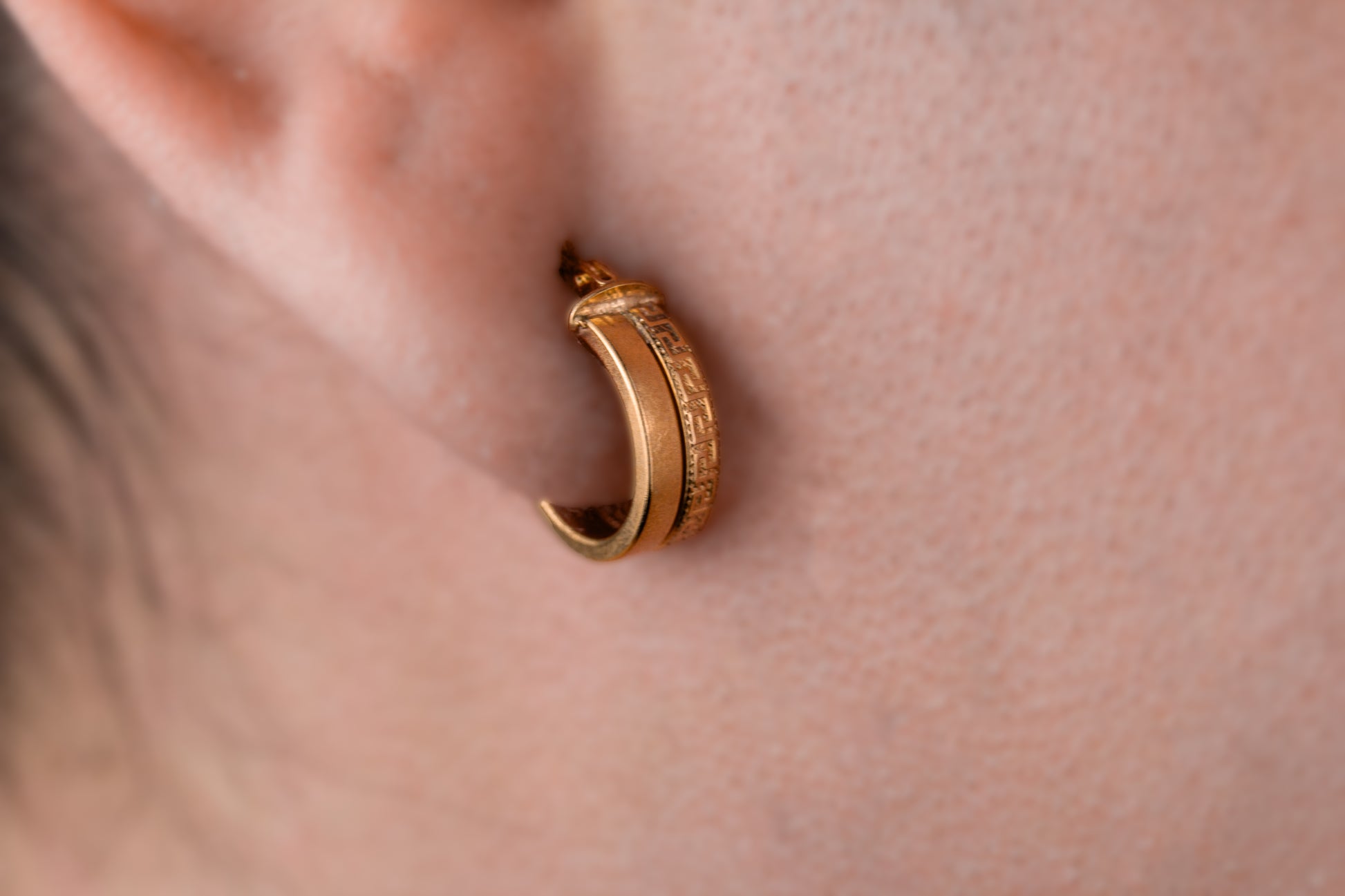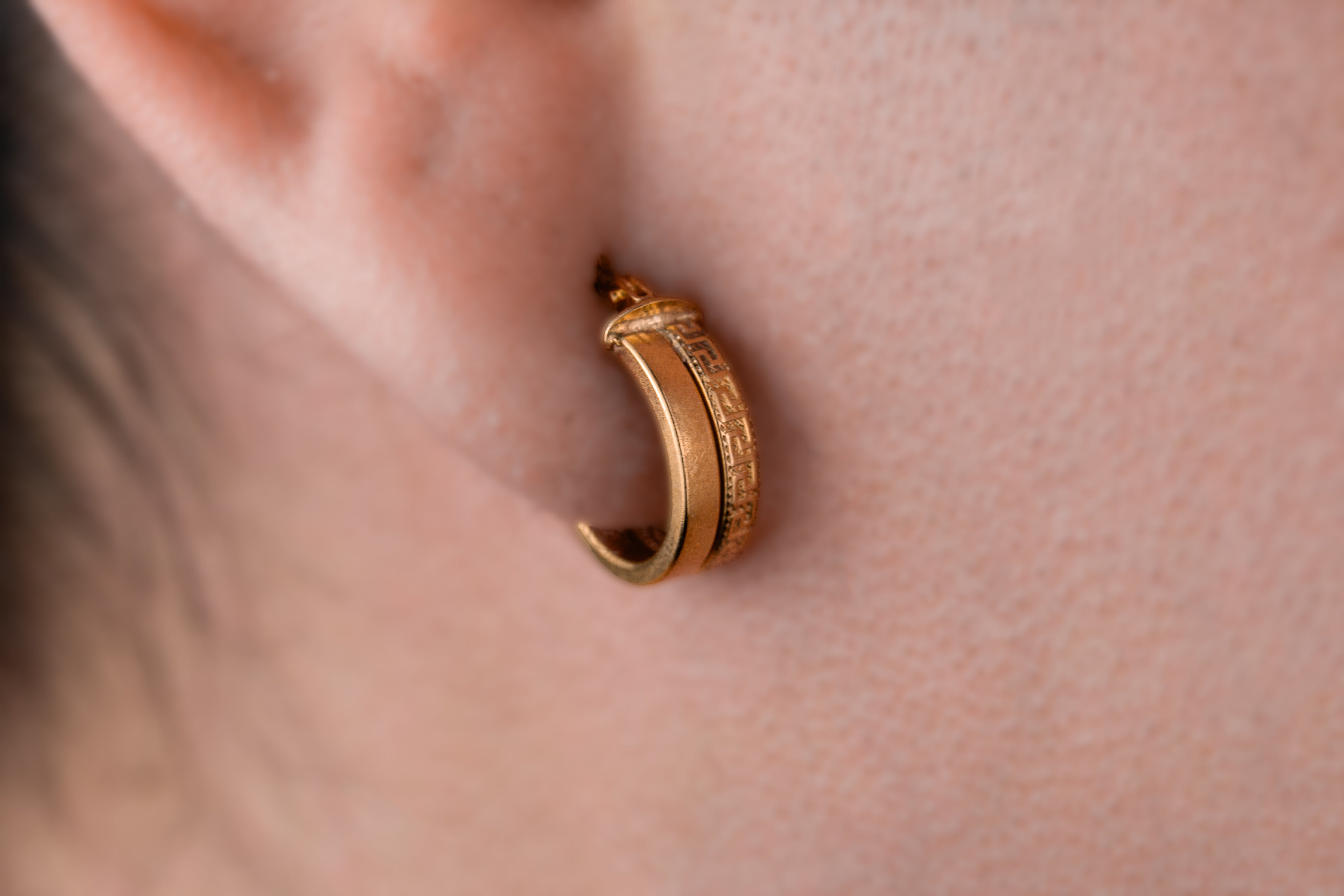Argollas de oro amarillo 10k Diseño versache doble banda labrada
