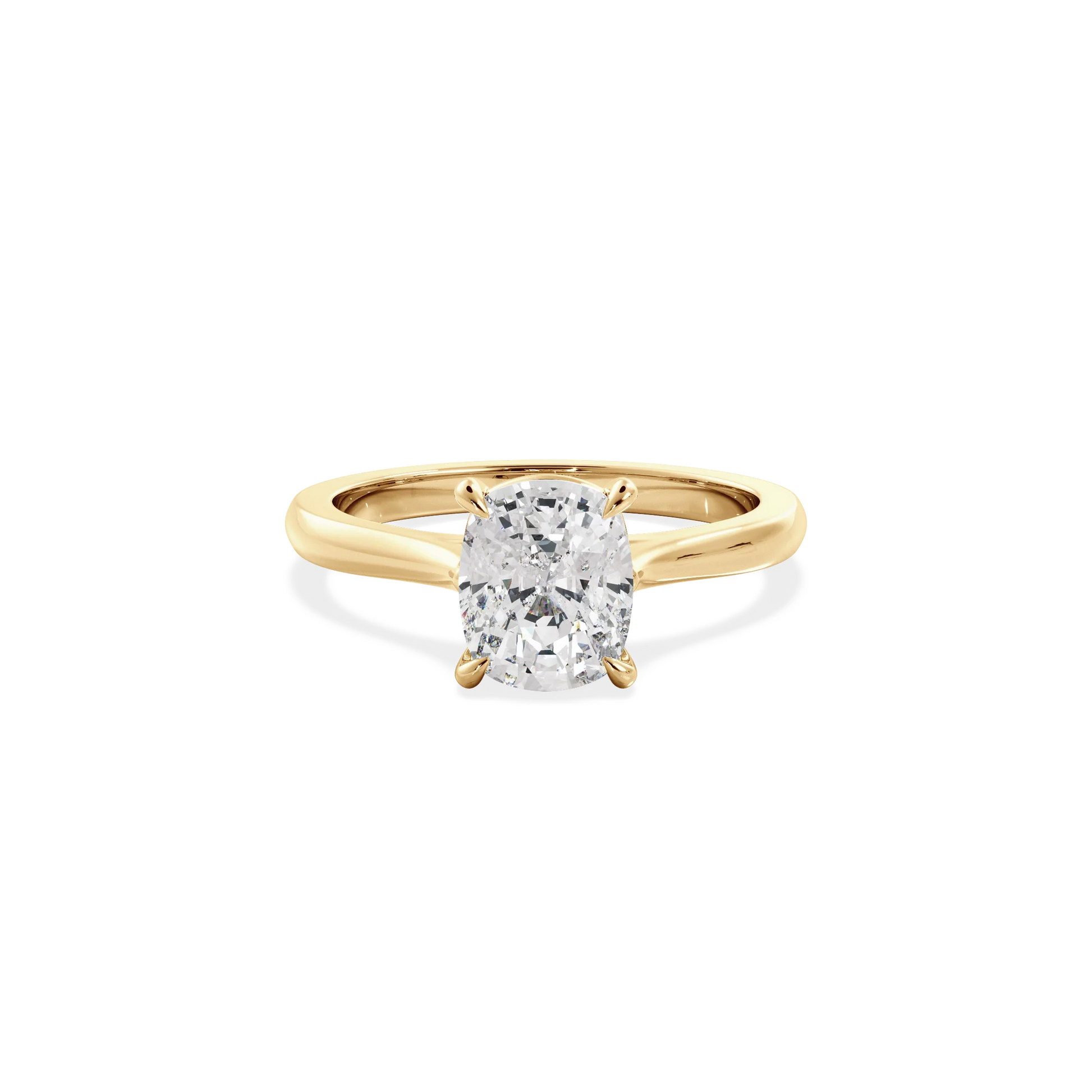 Oro amarillo, con moissanita de 1ct . Un ancho de banda de 2 mm estilo media caña.
