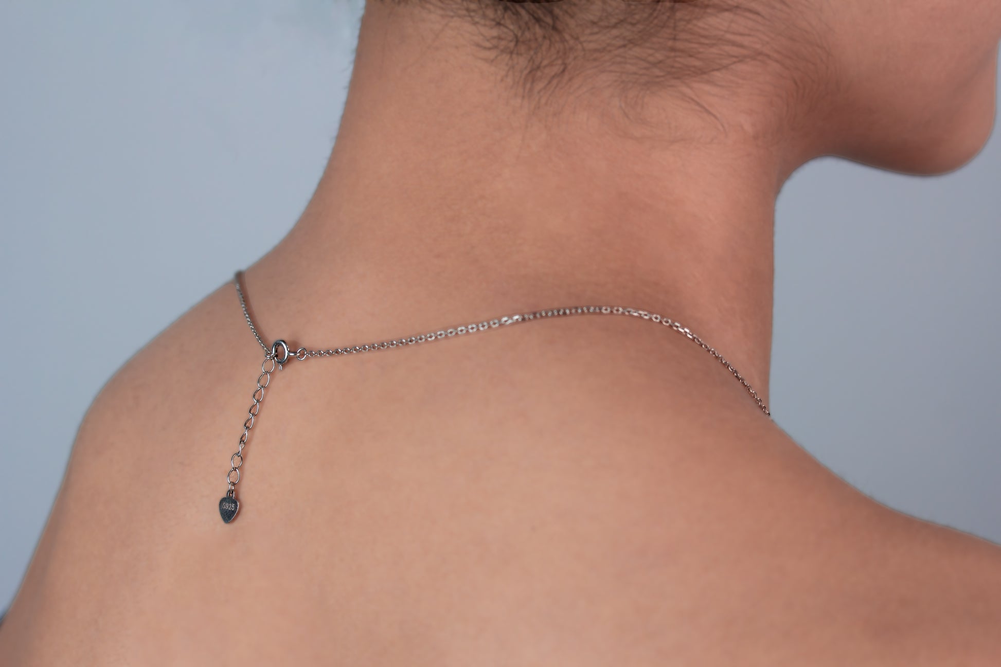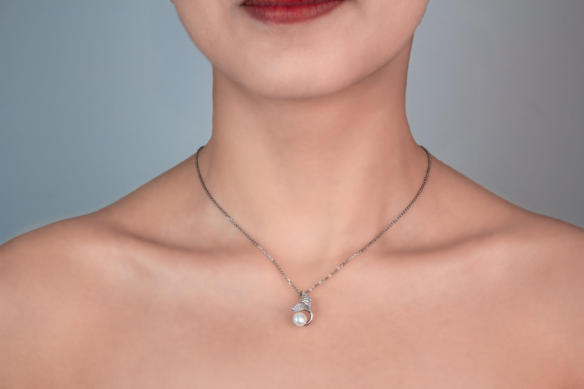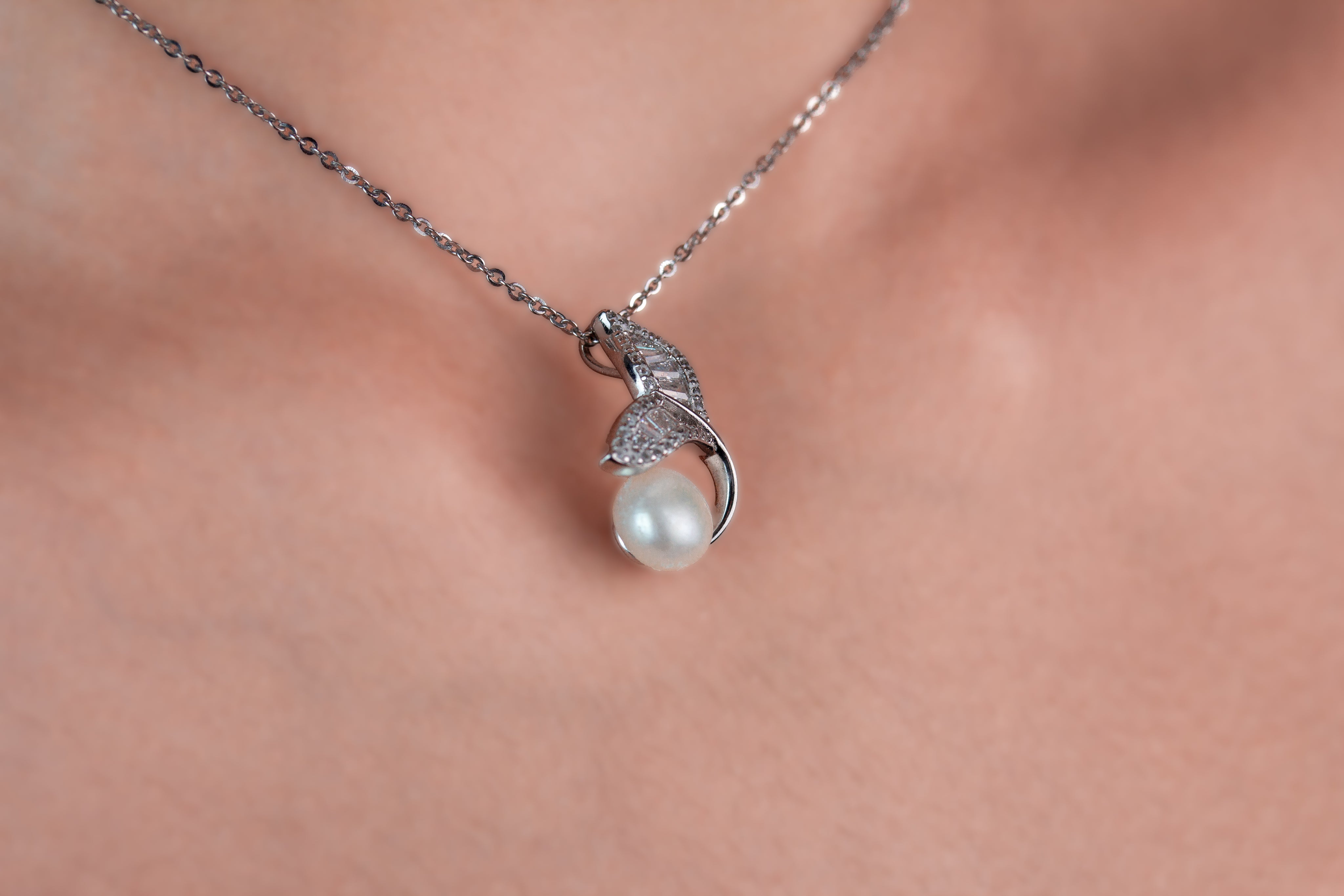 Collar de plata italiana 925 rodinada con dije colita de ballena y piedras semi preciosas incrustada y perla natural