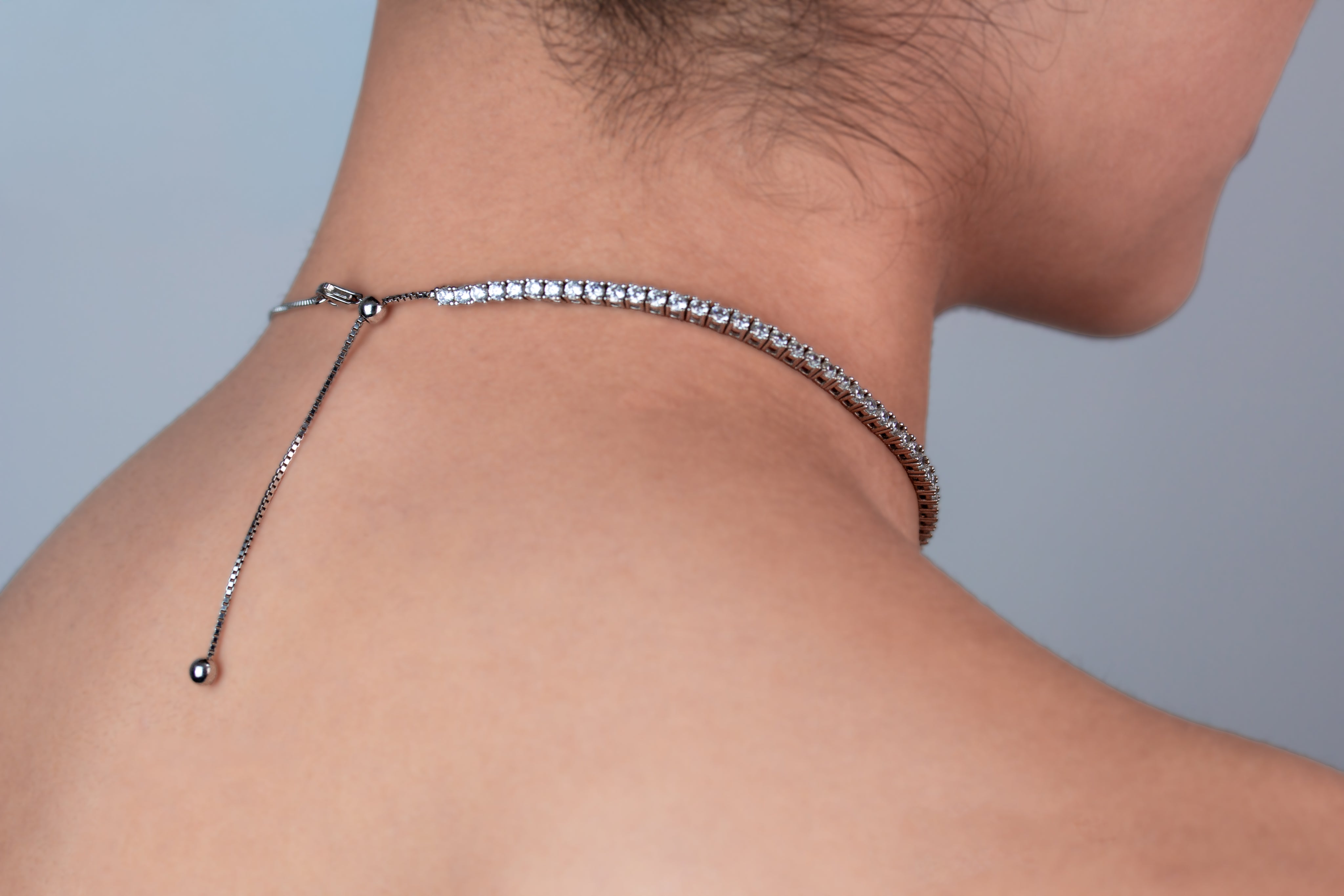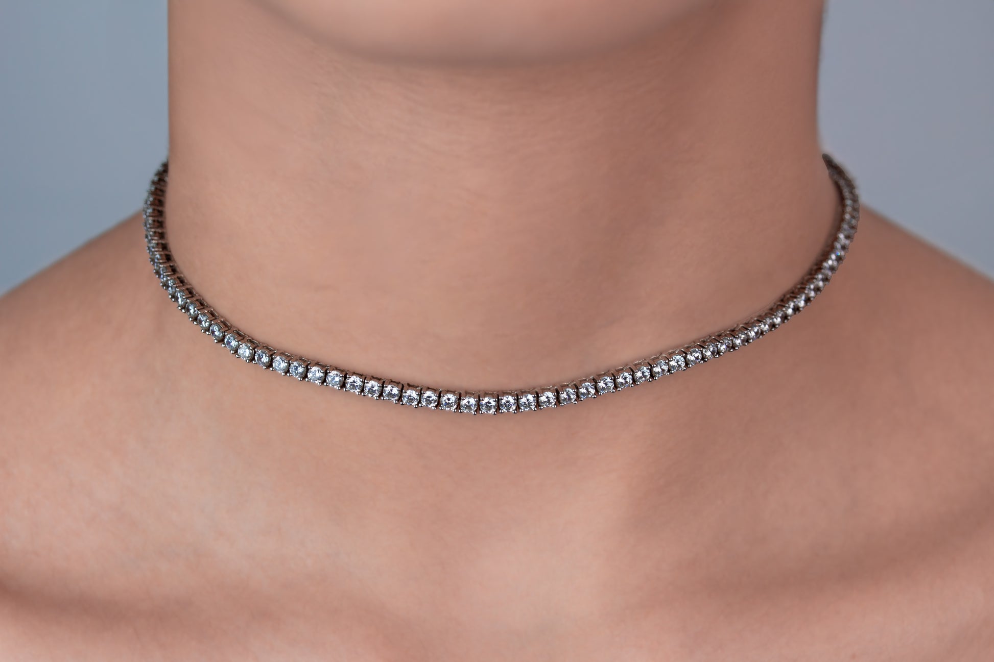Gargantilla elegante corta plata italiana 925 rodinada con piedras semi preciosas. Cierre de broche.