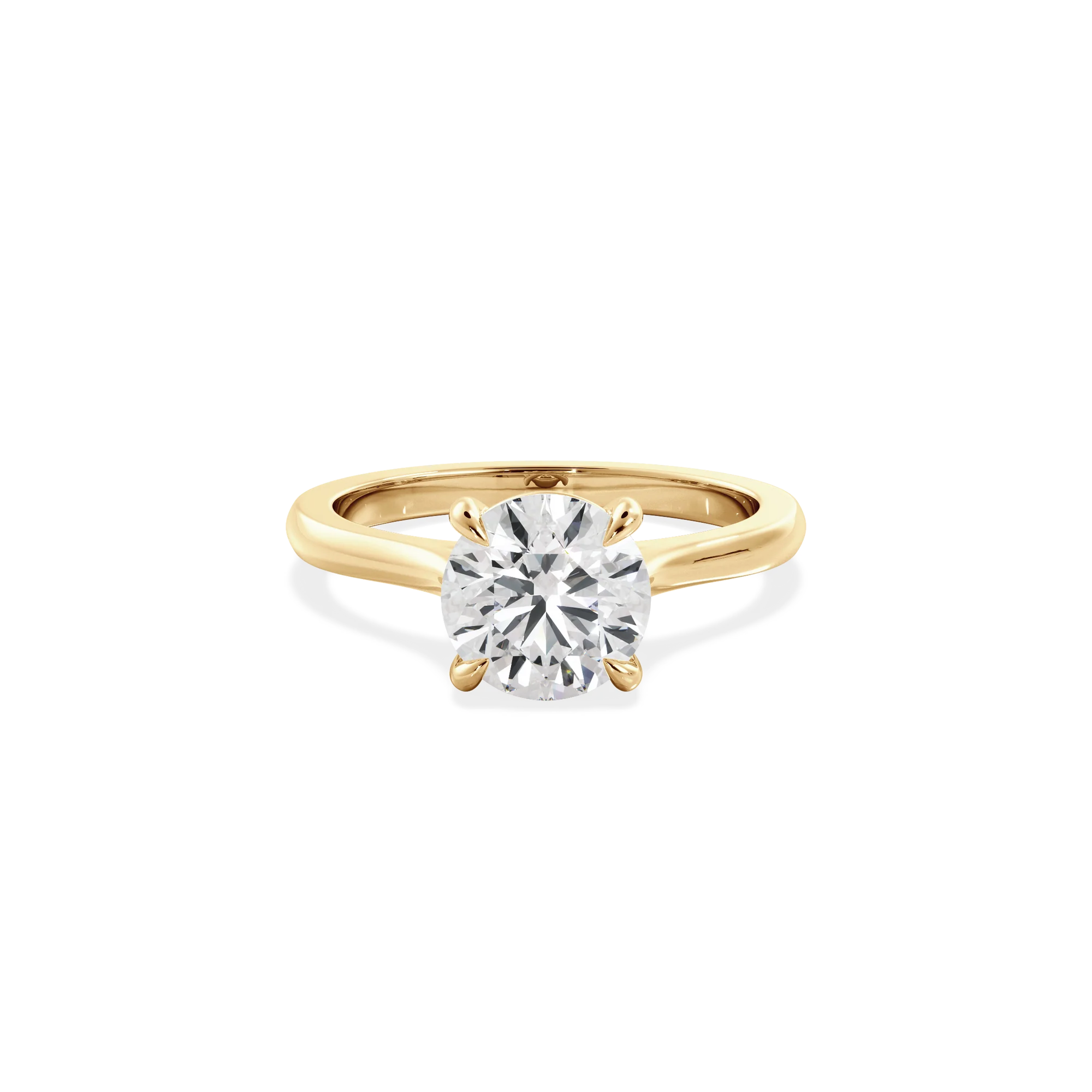 Anillo de compromiso estilo round Oro amarillo, con circonita AAA+ 1 quilates. 6,5 mm. Un ancho de banda de 2 mm esti...