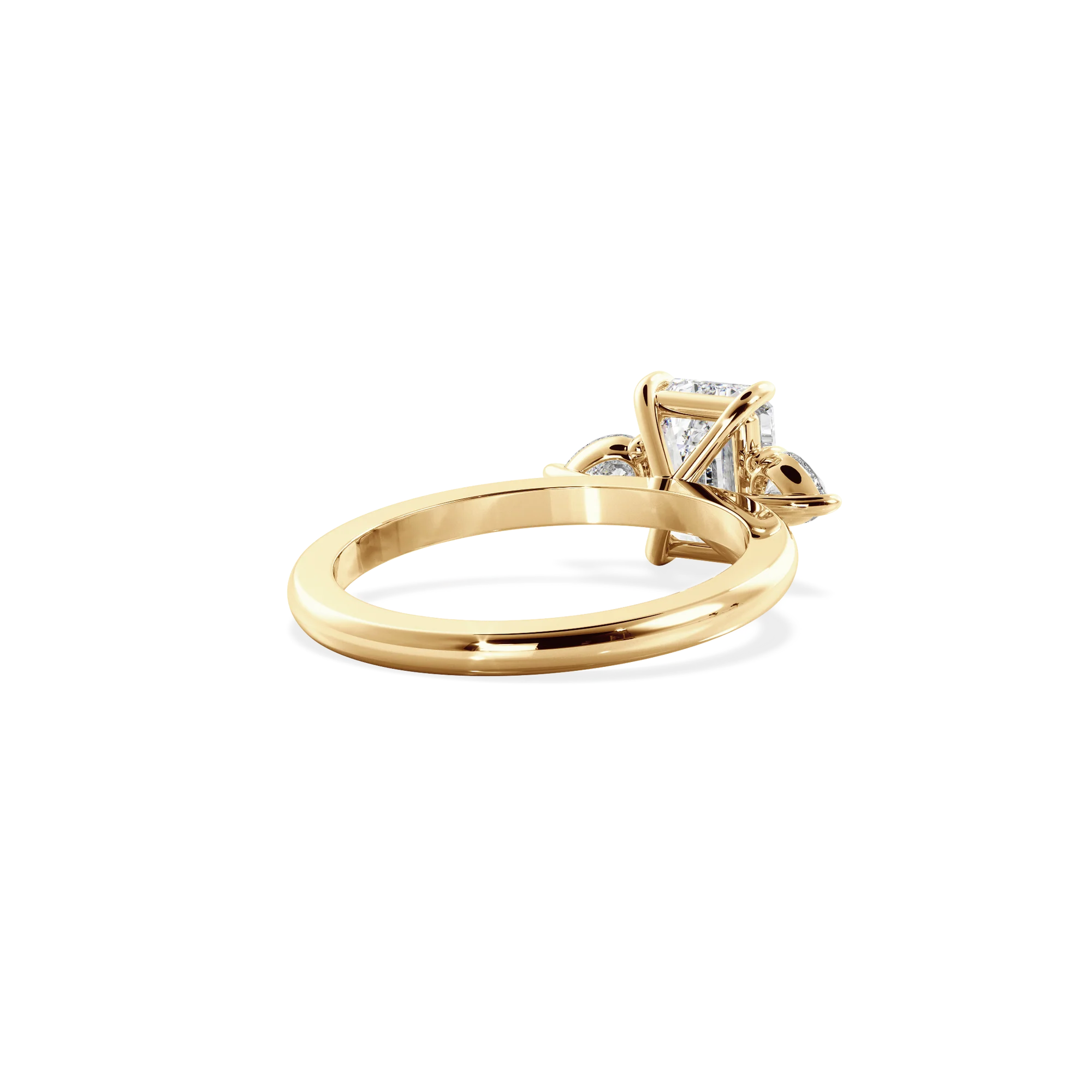 Oro amarillo, con moissanita de 1ct . con dimensiones de 7X5mm. Un ancho de banda de 2 mm estilo media caña.