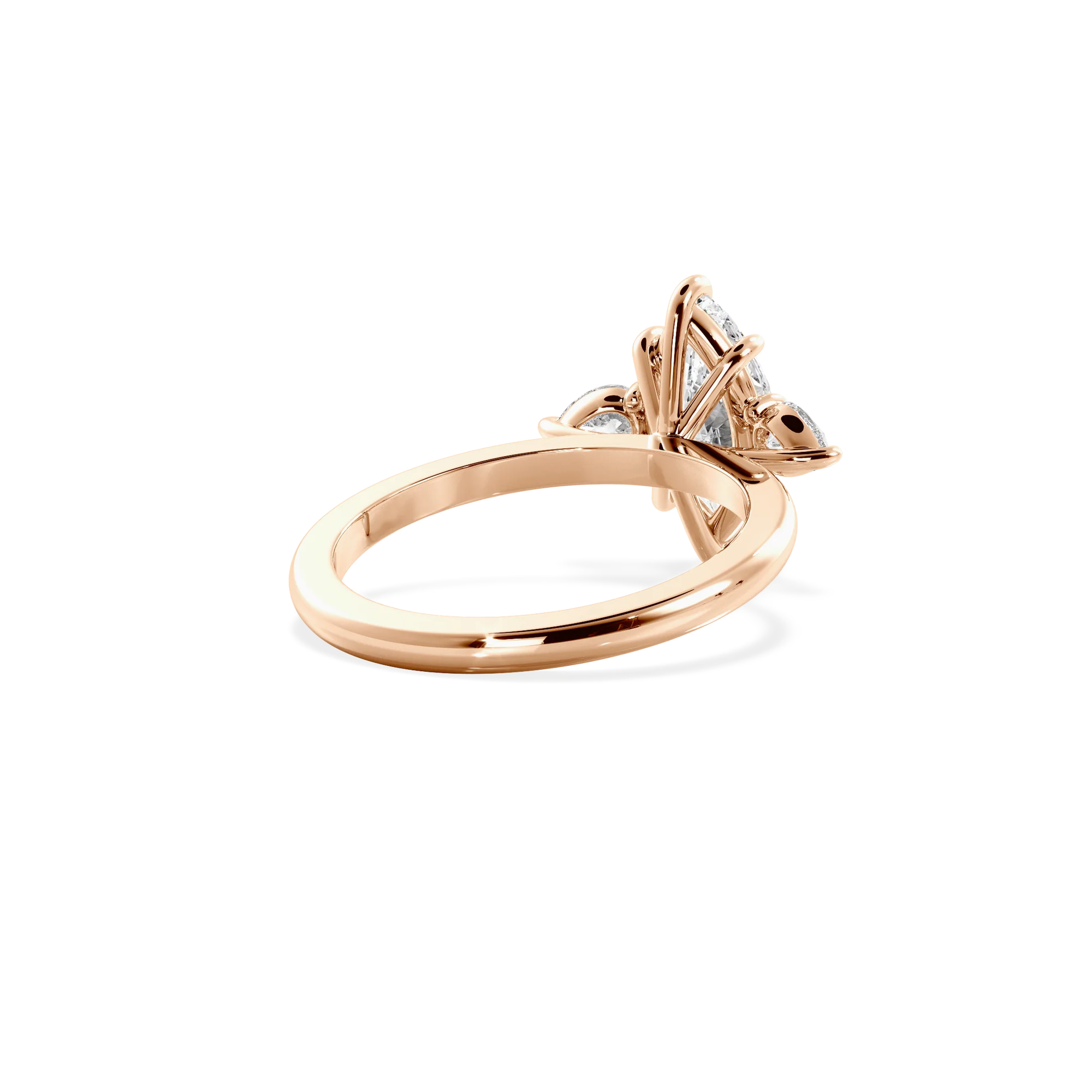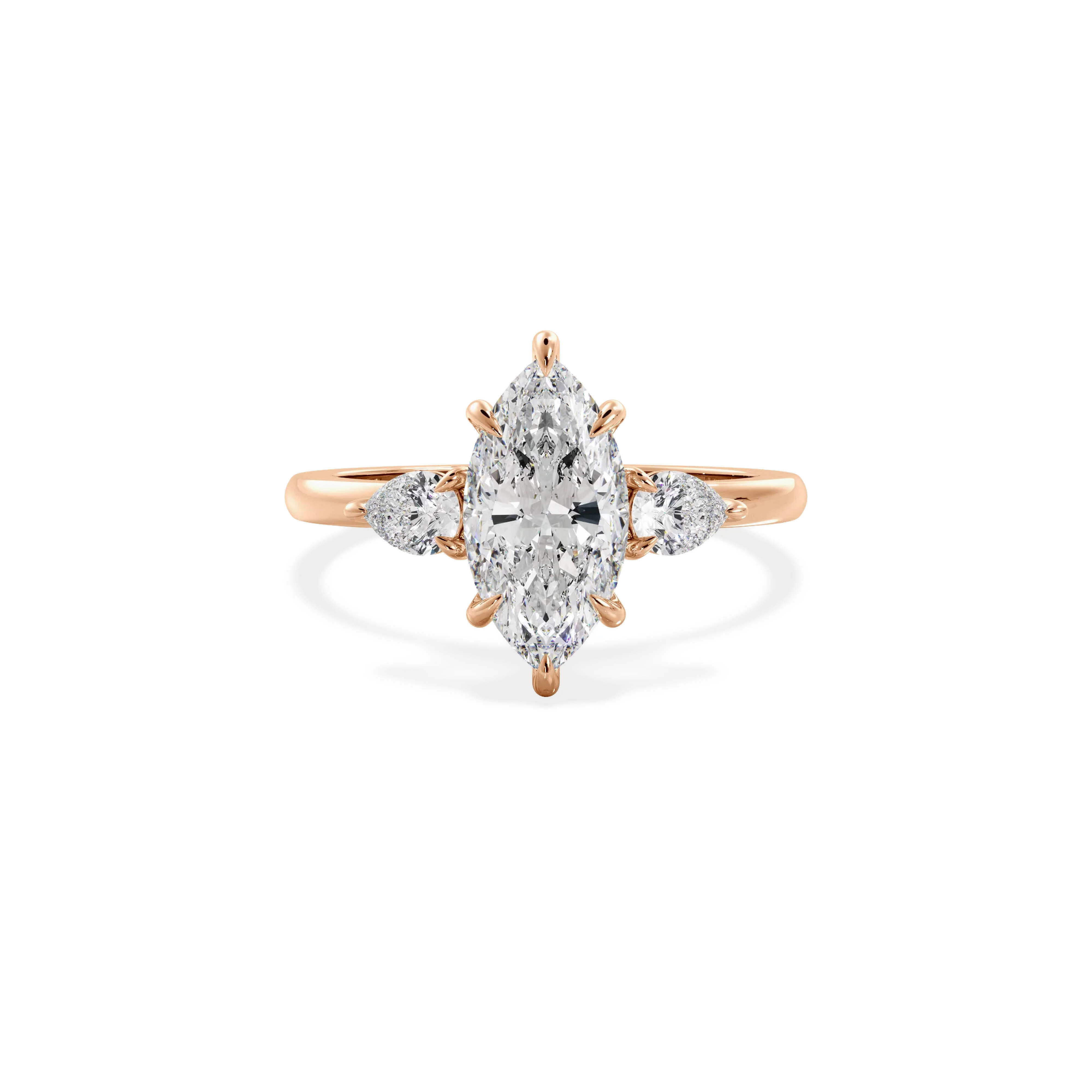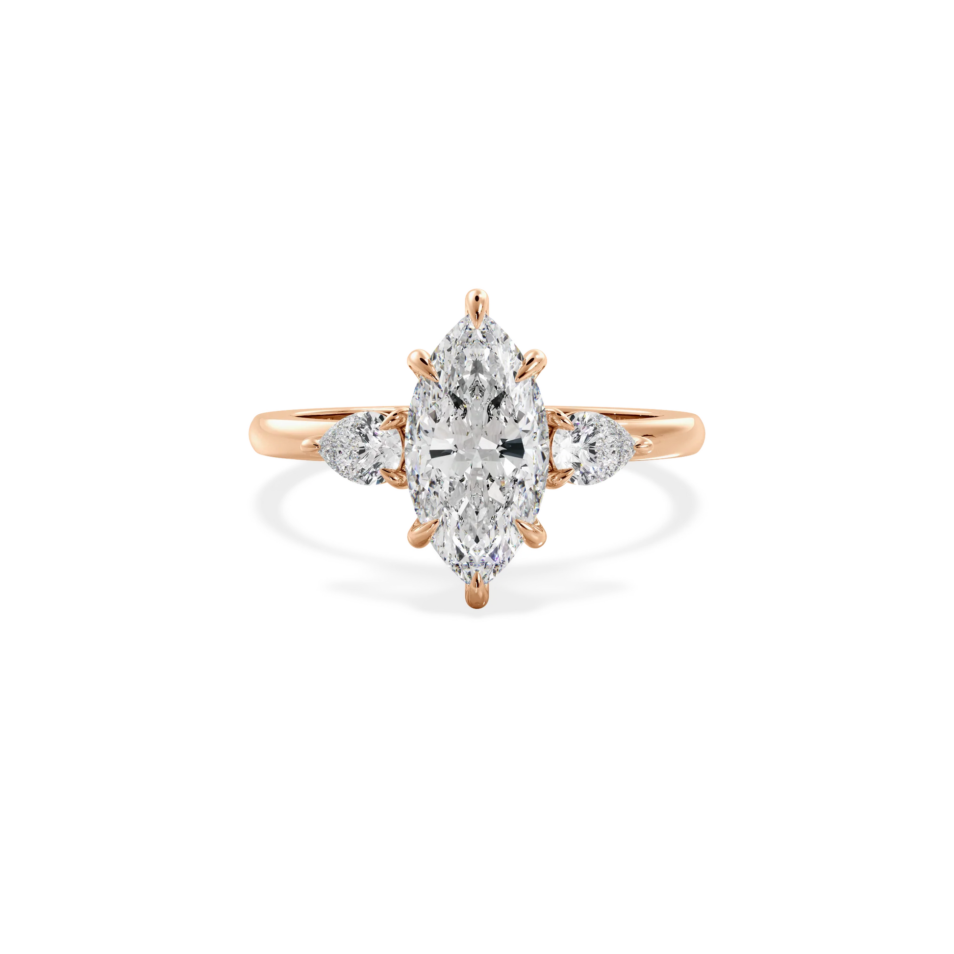 Oro rosado, con circonita AAA+ de 1ct . con dimensiones de 10X5mm. Un ancho de banda de 2 mm estilo media caña.