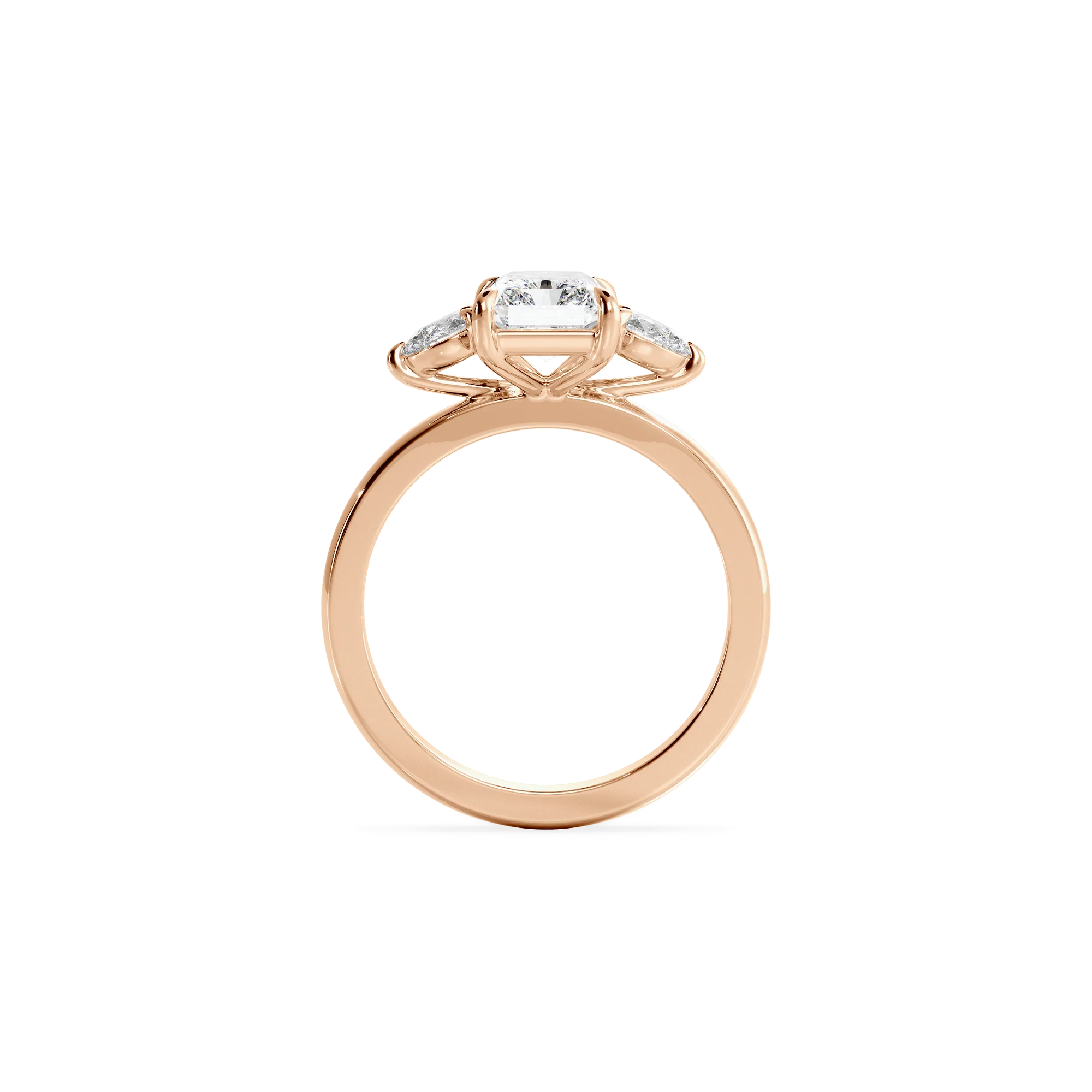 Oro rosado, con moissanita de 1CT . 7X5mm. Un ancho de banda de 2 mm estilo media caña.